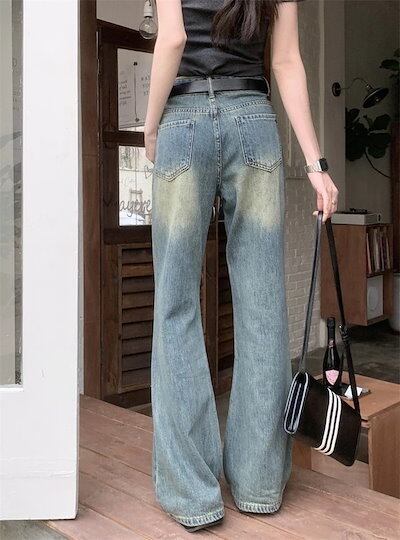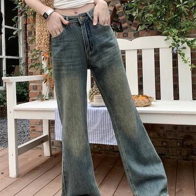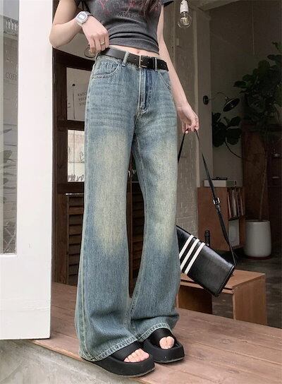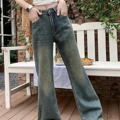 2025春夏パンツ デニム ジーンズ ワイド ストレート ハイウエスト 脚長効果 美脚効果 細見え ウォッシュ加工 夏 カジュアル おしゃれ かわいい 韓国ファッション レディース お出かけ30%まで | OPEN-korea