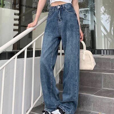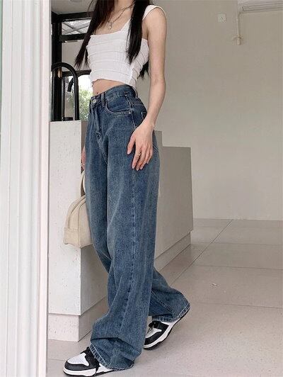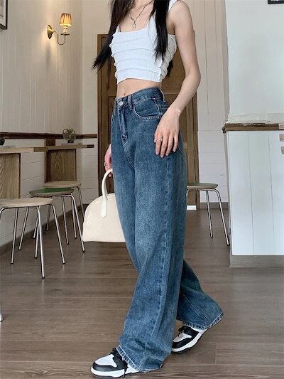 2025春夏パンツ デニム ジーンズ ワイド ストレート ハイウエスト 脚長効果 美脚効果 細見え 春 カジュアル おしゃれ かわいい シンプル 韓国ファッション レディース お出かけ30%までに制限 | OPEN-korea