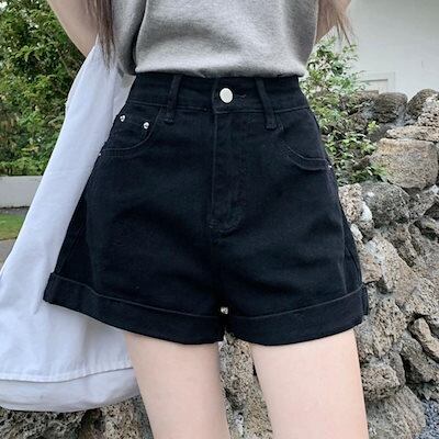 2025 春夏パンツ ショート丈 デニム ジーンズ ワイド ハイウエスト 美脚効果 脚長効果 細見え 夏 白 黒 おしゃれ かわいい 韓国ファッション レディース お出かけ30%までに制限 | OPEN-korea