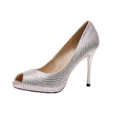 メガ割 2色 ピンヒール ハイヒール パンプス オープントゥ パーティー 宴会 レディース キラキラ