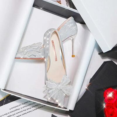 パンプス キラキラ 6cm 8cm キャバ ヒール キャバパンプス 靴 キャバシューズ レディース 結婚式 二次会 パーティー キャバ 痛くない 歩きやすい 銀色 シルバー ラメ ウエディングシューズ | OPEN-korea