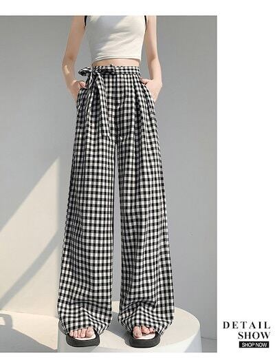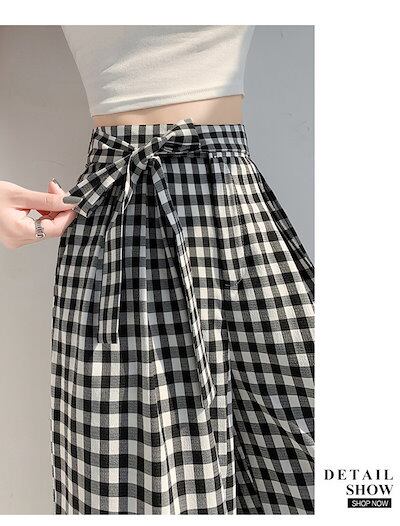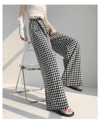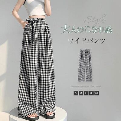ワイドパンツ レディース 夏 ギンガムチェック チェック柄 ロングパンツ 綿麻風パンツ ワイド ロング丈 ウエストゴム ズボン 大きいサイズ 体型カバー ゆったり カジュアル きれいめ 薄手 着痩せ | OPEN-korea