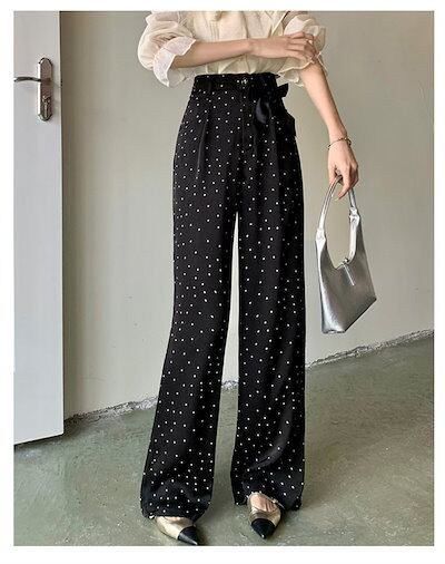ワイドパンツ レディース きれいめ スシフォンパンツ 薄手 夏用 ドットパンツ 水玉 シフォン ストレートパンツ 薄手 リゾートパンツ きれいめ 夏 ウエストリボン ボトムス 大きいサイズ ゆったり | OPEN-korea
