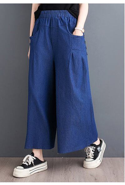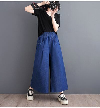 デニムパンツ レディース 秋 薄手 ワイドパンツ 大きいサイズ デニム ボトムス リラックスパンツ ゆったり 体型カバー ストレッチデニム 大人 ウエストゴム ポケット付き 低身長 柔らか 着?せ 美 | OPEN-korea