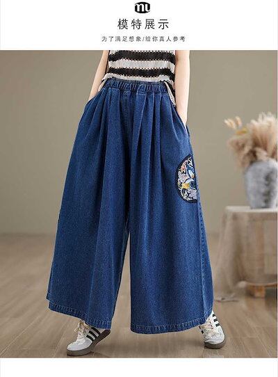 「ファットガール」 夏 デニム キュロットスカート フレアパンツ 刺繍 薄手 ワイドパンツ 体型カバー 大きいサイズ ゆったり レディース 福袋