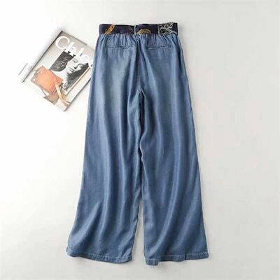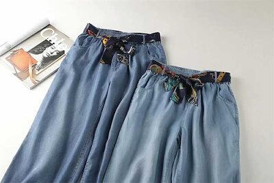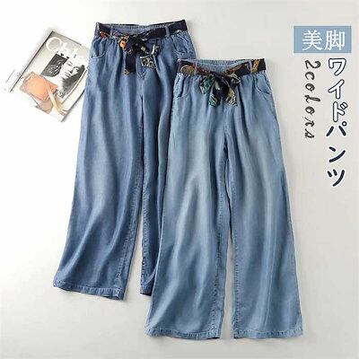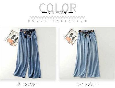 デニムパンツ レディース ワイド パンツ ズボン ロング ボトムス ジーンズ ガウチョ UVカット 冷感素材 接触冷感 冷感 スカーチョ 薄手 柔らか ゆったり 美脚 体型カバー ウエストゴム ポケッ | OPEN-korea