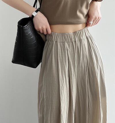 ワイドパンツ レディース きれいめ ロングパンツ 涼感 ひんやり 接触冷感 UVカット イージーパンツ ボトムス ウエストゴム 薄手 涼しい ズボン 大人 ゆったり ワイド 楽ちん リラックス シンプ | OPEN-korea