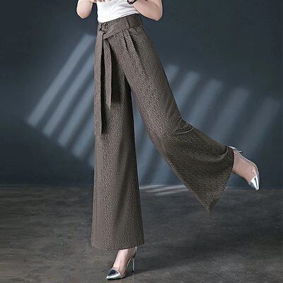 【新品】アイスシルク ハイウエスト ワイドレッグパンツ ジャガード カジュアルパンツ レディース 薄手 新品中年 レディース パンツ ドレープ ゆったり パンツ