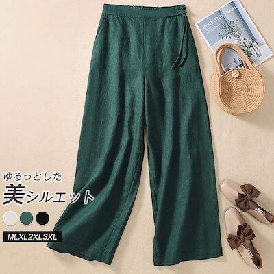 2024新作 パンツ レディース きれいめ ズボン ワイド 綿麻風 ボトムス ロング 長ズボン ウエストゴム ゆったり 体型カバー 大きいサイズ ハイウエスト 美脚 カジュアル お洒落 楽ちん 薄手 | OPEN-korea