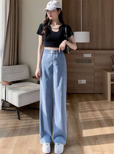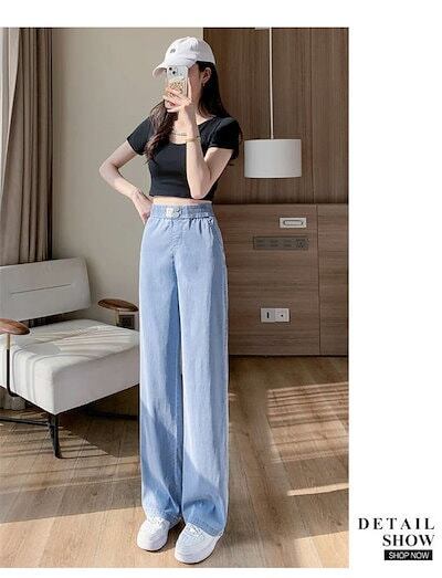 2024新作 パンツ レディース デニム ワイドパンツ 夏 接触冷感 ひんやり ボトムス 長ズボン ガウチョパンツ スカーチョ 紫外線対策 薄手 ウエストゴム 体型カバー 春 無地 着痩せ 美脚 通勤 | OPEN-korea