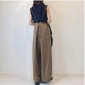 2024新作 サロペット ロング 春 薄手 つなぎ 大人可愛い ワイドルーズ コーヒー色 ブラック 無地 レディース 楽ちん パンツ 大人 オールインワン お呼ばれ 体型カバー おしゃれ 夏 F シン | OPEN-korea