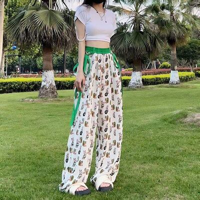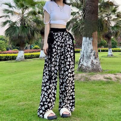 スラックスパンツ シフォンワイドパンツ 接触冷感 韓国ファッション 着痩せ パンツ 薄手 夏 ハイウエスト ワイドパンツ レディース ロングパンツ