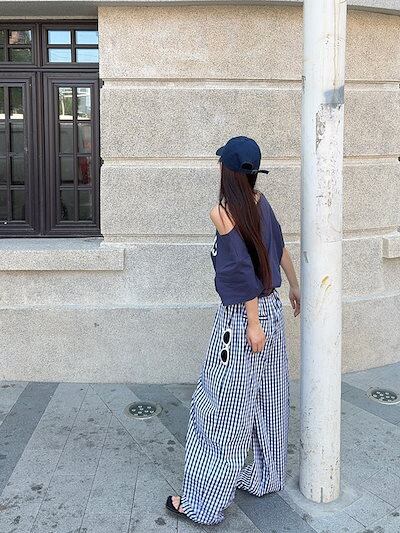 2024夏トップス Tシャツ 半袖 ワンショルダー 英語 肩見せ ゆったり 細見え 夏 ネイビー おしゃれ かわいい 韓国ファッション レディース お出かけ
