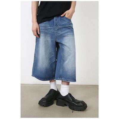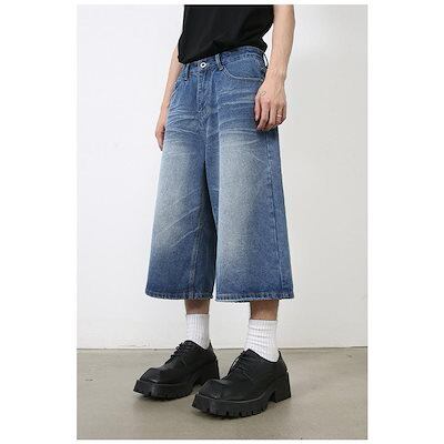 大きめ ワイドパンツ ゆったり 太め アンクルパンツ ブランド デニムパンツ ジーンズ レディース デニム gパン メンズ ボトムス ストレート 7分丈 ジーパン