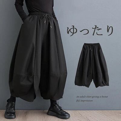 バルーンパンツ パンツ レディース サルエルパンツ ロング丈パンツ ボリェーム感 ウエストゴム アンクルパンツ サイドポケット ハロンパンツ ウエストリボン ブラック ロングパンツ ワイドパンツ ボト