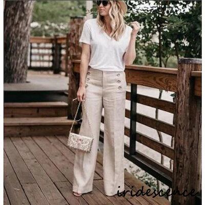 【迅速な出荷】ワイドパンツ レディース きれいめ 春 9分丈 アンクルパンツ ハイウエスト フロントボタン ガウチョパンツ カジュアル ボトムス2(個)ごとに11 O円き