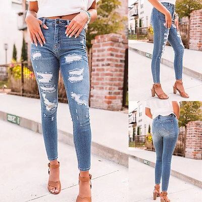 【幸運】デニムパンツ レディース スキニー ボトムス ダメージ ジーンズ ストレッチ 着痩せ アンクル丈 美脚 カジュアル スリム 新着 伸縮 動きやすい