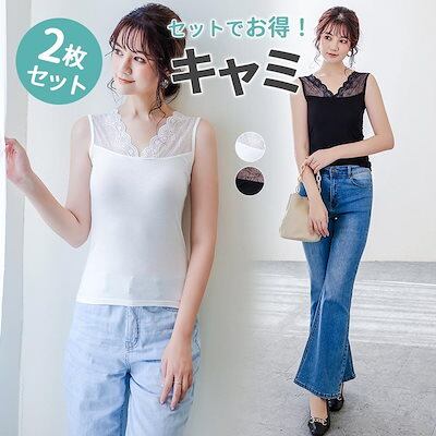 キャミソール キャミ レディース インナー 2枚セット カットソー トップス キャミ キャミソール インナー トップス タンクトップ 肌着 ロング 無地