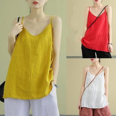 カップ 付きインナー ノースリーブ 夏服 リネン キャミソール 快適 百掛け トップス 屋内 屋外 ノースリーブ Tシャツ レディース 韓国ファッション キャミソール インナー