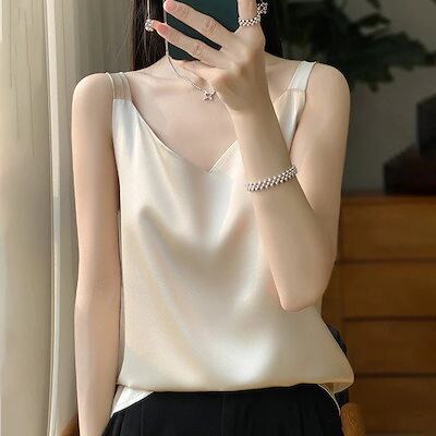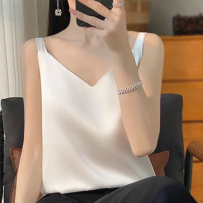 キャミソール タンクトップ 無地 柔かい アセテートサテンキャミソールレディースサマースーツ ゆったりとしたノースリーブボトムシャツと