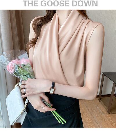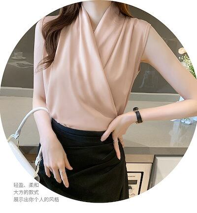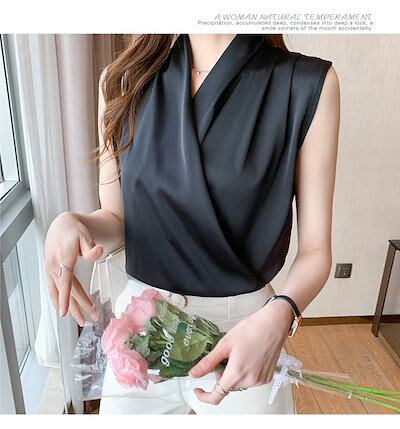 シフォンシャツ 新作夏服 ノースリーブ キャミソール タンクトップ レディース Vネック 皺防止 気質 セクシー 絹織物 インナー