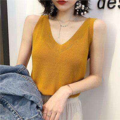 キャミソール タンクトップ 高級感 レディース 夏 ノースリーブTシャツ ニットアンダーウェア Vネックトップス