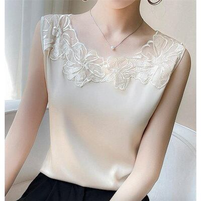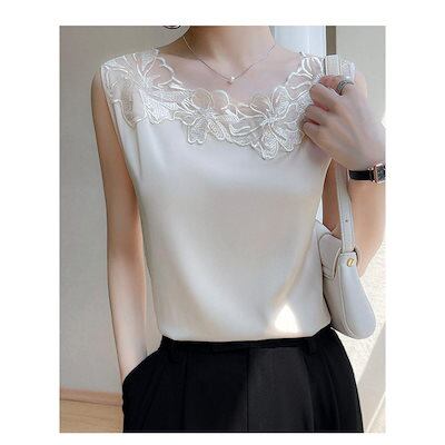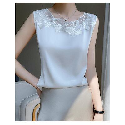 ブラウス レディース おしゃれ トップス タンクトップ レース 花柄 tシャツ 柔らか 光沢感 大きいサイズ オフィス 通勤 ゆったり 体型カバー 夏 インナー