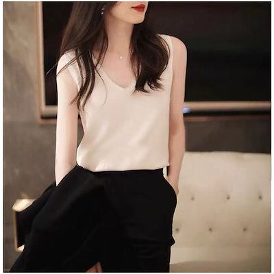 カップ 付きインナー 春夏 インナー タンクトップ インナーキット ビーズ弔り ノースリーブ Vネック レディース 気質 ニットベスト