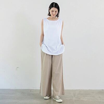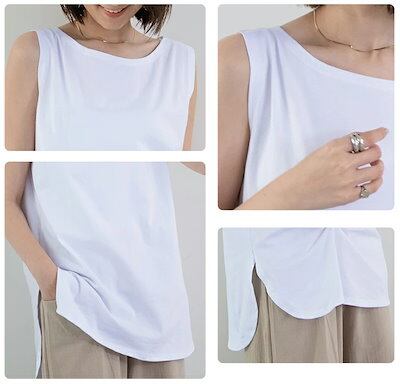 半額限定!ベスト インナートップス レディース 春 夏 キャミソール タンクトップ ノースリーブ tシャツ ラウンドネック サイドスリット 大きいサイズ デザイン お出かけ 敬老の