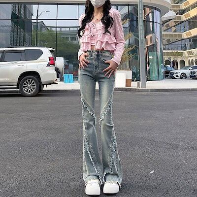 美脚 ジーデニム パンツ楽ちん ゴム デニムパンツ レディース 大きいサイズ ゆったり ストレートパンツ ボリューム ロングパンツ美脚 ジーンズ ジーパンツひんやりボトムス 脚長効果!