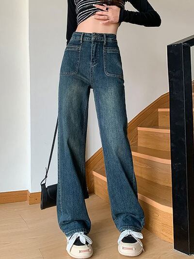 ワイドパンツ ヴィンテージ 美脚 レディース 美脚 デニムパンツ ハイウエスト ストレート ワイドパンツ ヴィンテージ 原宿風 ゆったりワイドパンツ デニムパンツ パンツ