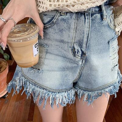 プラウス 流行り ダメージジーンズ/ デニムパンツ ショットパンツ 垂れ感 流行韓国 ハイウエスト