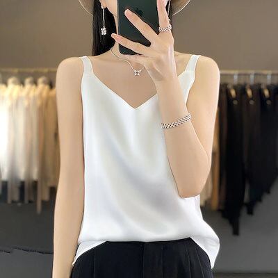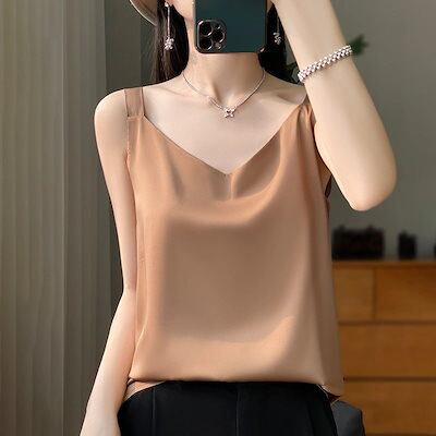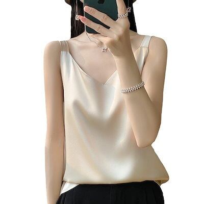 キャミソール タンクトップ 無地 柔かい アセテートサテンキャミソールレディースサマースーツ ゆったりとしたノースリーブボトムシャツと