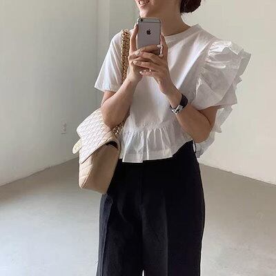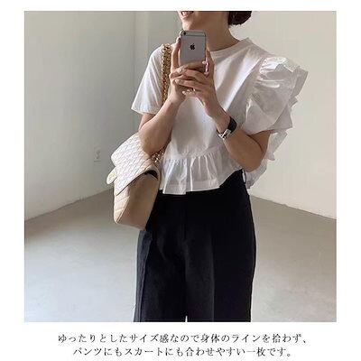 tシャツ カットソー キレイめ フリルシャツ ギャザー きれいめ ショート丈 フリルカットソー レディース 半袖tシャツ 無地 白シャツ クルーネッ