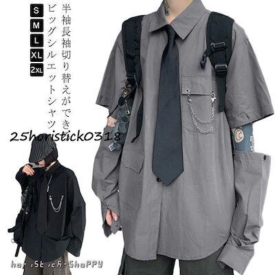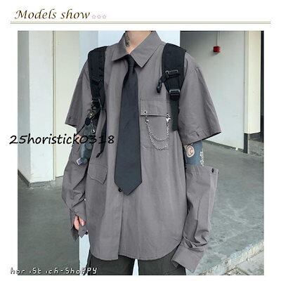 飾りチェーン付き 春秋 半袖 長袖 シャツ レディース 袖取り外し可能 韓国 無地 ネクタイ付き カジュアル ユニセックス 薄手 メンズシャツ シャツ