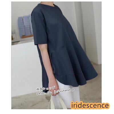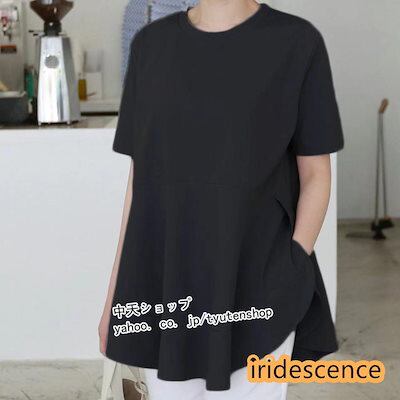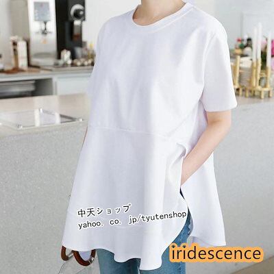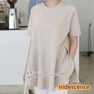 2つ目はサプライズTシャツ 半袖 レディース 夏tシャツ おしゃれ カットソー Aライン トップス 無地 シンプル スリット カジュアル ゆったり 40代50代 新作 コーデ 4色