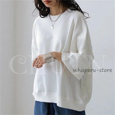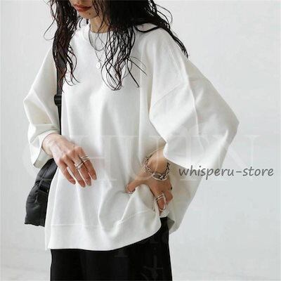 トレーナー 半袖 プルオーバー レディース 夏 トップス tシャツ スウェット クルーネック 七分袖 無地 着痩せ 体型カバー お洒落 ゆったり カジュアル 母の日