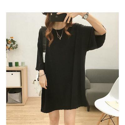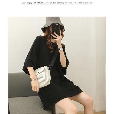 季節限定 ロングTシャツ ワンピース レディース Tシャツ チュニック 半袖 無地 トップス カジュアル カットソー ゆったり おしゃれ 着痩せ 旅行 春夏