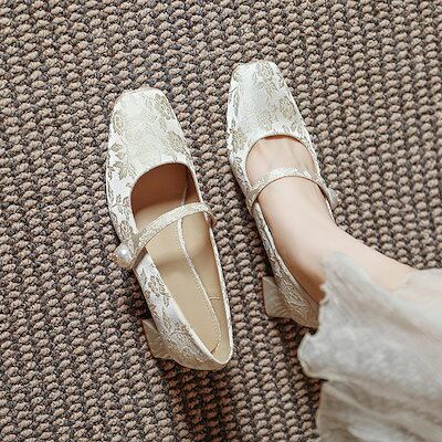 パンプス 痛くない 2025春新作ジャカードパール中ヒール太ヒールメアリージェーンシングルシューズ女 靴レディースパンプス ローヒール