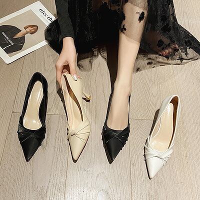 新作 パンプス 春靴 スタイルアップ!ヒールパンプス ハイヒール2025春と秋の新しい浅い口のプロフェッショナル尖った靴ソフトレザーファインファッションシングルシューズ