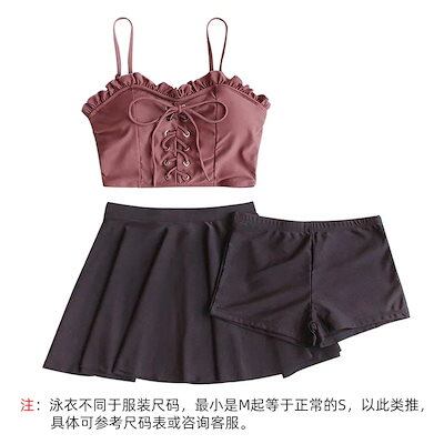 レディース水着ツーピースフレアフリル 編み上げ 胸リボン腰リボン Aライン スカートパンツタイプ温泉海プールスイミングビーチリゾートマリン海水浴夏休み旅行可愛いセクシー女性ブラック黒色SMLXLサイズ