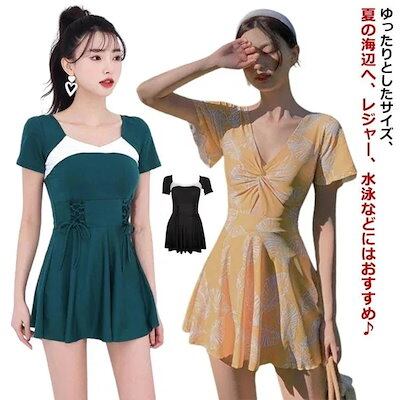 2024新作 レディース 水着 体型カバー ワンピース タンキニ 体型カバー水着 大きいサイズ ぽっちゃり オトナ女子 露出控えめ ミセス バックフリル ショートパ