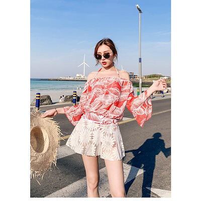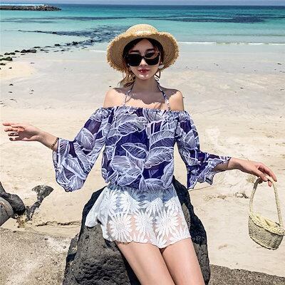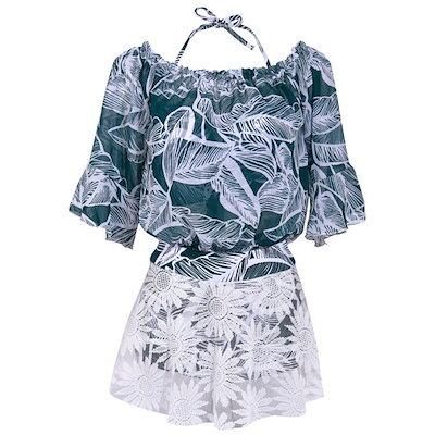 水着レディース 体型カバー 水着 ワンピース型 サロペット 肩出し 小胸バンドゥ 水着 葉柄 フリル 韓国風 40代 大きいサイズ 可愛いスイムウェア 温泉 ママ