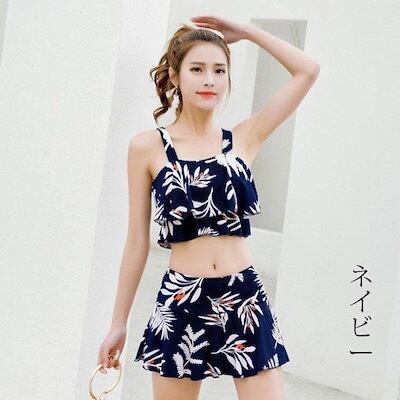 水着 レディース 体型カバー ビキニ スカート 2点セット 花柄 フリル キャミソール+スカート可愛い 温泉 海水浴 人気 女性用 おしゃれ 20代 30代 40代 3色