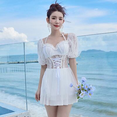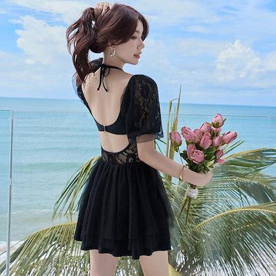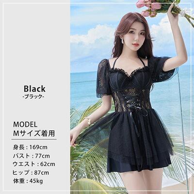 オーガンジー 水着 オープンショルダー かわいい オールインワン 光沢 ワンピース おしゃれ レディース フリル袖 大きいサイズ 体型カバー