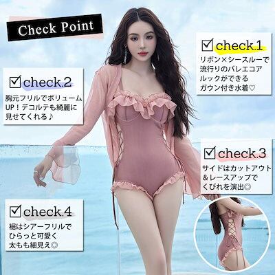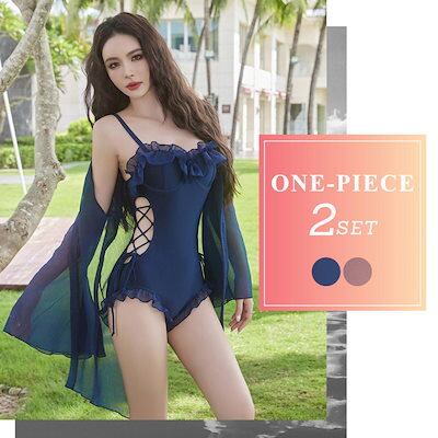 ワンピース おしゃれ 2点セット ガウン付き 2way セクシー レディース シースルー 体型カバー フリル オールインワン 水着