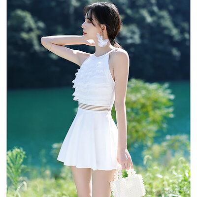 水着レディース ミセス ブラック ワンピース水着 ホワイト 黒 ママ ワンピース 白 レースフリル 体型カバー リゾート水着 ショートパンツ バックシャン