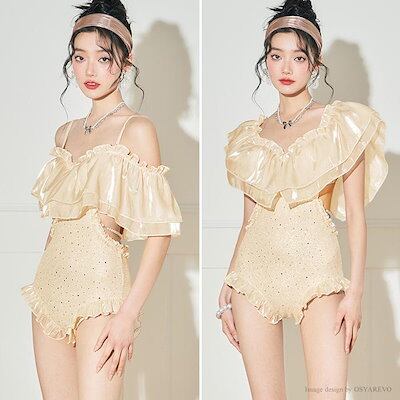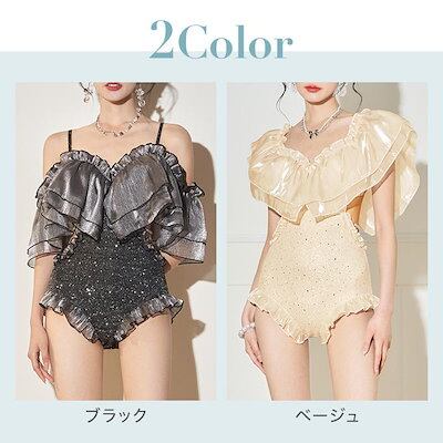 可愛い モノキニ水着 パールストラップ 水着レディース レディース水着 ワンピース水着 水着 ワンピース ホログラム ティアードフリル レディース 体型カバー