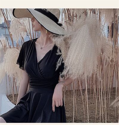 水着 レディース ワンピース 体型カバー 大きいサイズ かわいい おしゃれ 無地 黒 フリル 袖 ハイウエスト 露出控えめ カットアウト ビキニ スカート オールインワン ママ水着 オトナ女子 無地