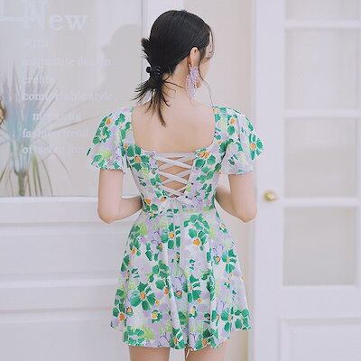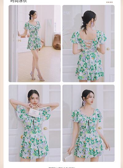 水着 レディース ワンピース 体型カバー水着 大きいサイズ ぽっちゃり かわいい おしゃれ フリル袖 ハイウエスト 露出控えめ カットアウト カッティング 二の腕 お尻 太もも お腹 カバーアップ 2